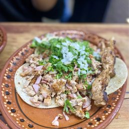 This place is a must try. Ordered the lemonade not knowing it would be lightly carbonated. So good. Although it may not be homemade lemonade, I know it definitely isn't Minute Maid or Country Time. It was a pleasant surprise. Ordered the chicken, beef/steak and pork chop tacos. Although they are all deliciosa, I was surprised the pork chop taco had bone-in pork chop. I demolished all the meat off that bone. I will be back before I leave, for sure!